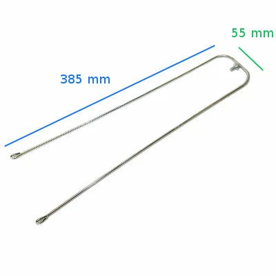 Cette tringle faite d’acier est utile à la fixation d’un garde-boue ancien sur un vélo 28 pouces ou vélo de ville. Elle se fixe sur un garde-boue d’une largeur maximale de 55 mm. La vis de fixation est intégrée à la tringle et nécessite un boulon M5 non fourni et proposé en option. Les extrémités de la tige se placent sur l’axe de roue, avec une distance maximale de 385 mm entre l’axe et le garde boue.