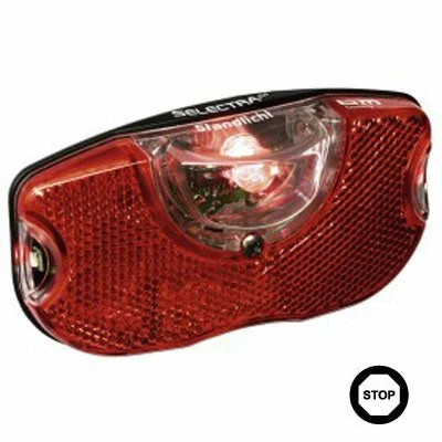 Le feu arrière pour vélo Selectra éclaire et signale votre position à l’aide de diodes. Afin d’optimiser la visibilité, deux leds ont été intégrées sur les côtés pour compléter l’éclairage de la diode centrale.