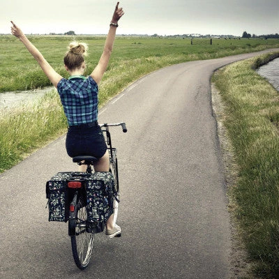 La sacoche double Wanderlust permet de ranger facilement ses affaires ou des petites courses à vélo. Ses motif fleuris séduisent tout particulièrement les demoiselles cyclistes.
