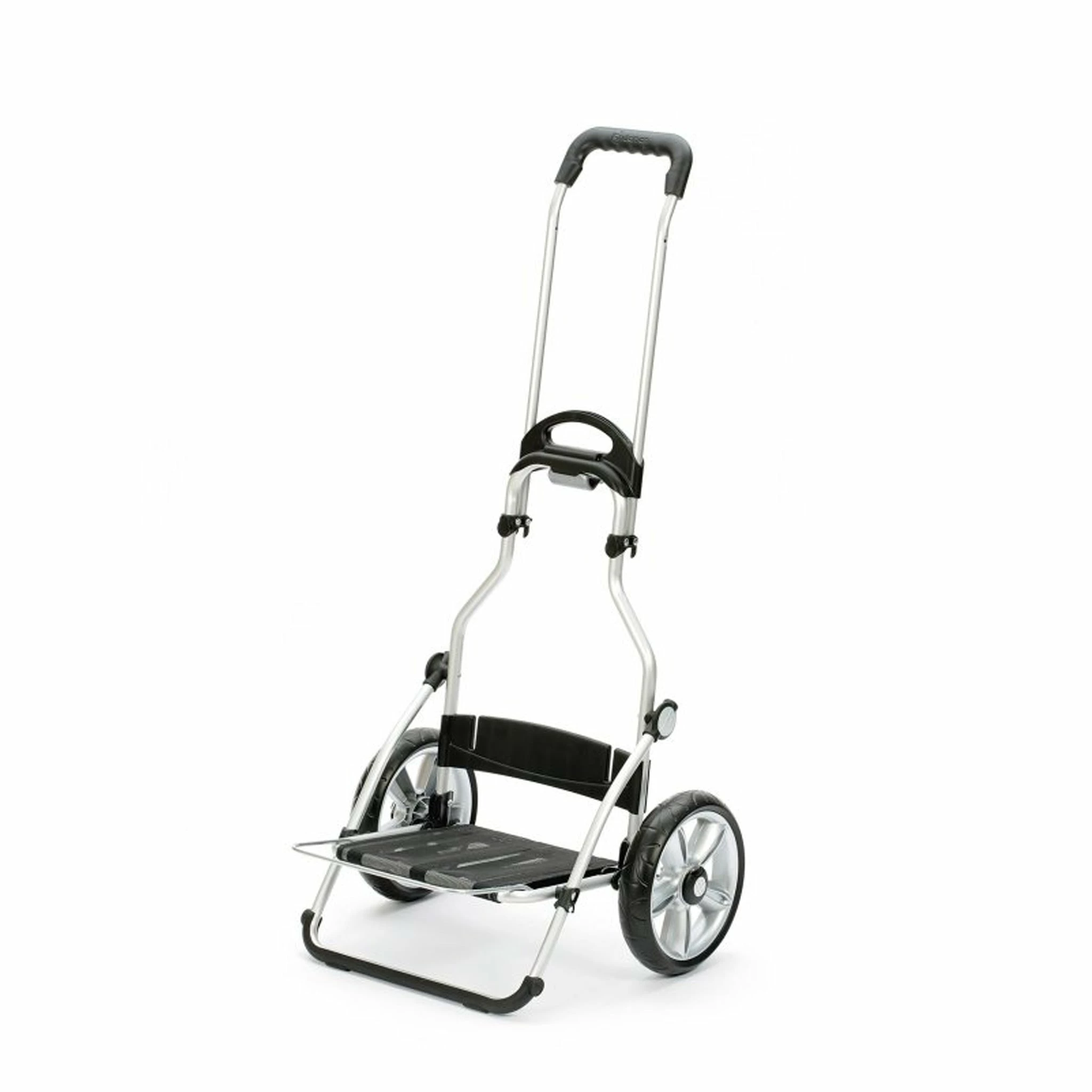 Le châssis Royal Shopper est à la fois léger et robuste avec sa construction en aluminium de haute qualité. Les roues à roulements à billes sont silencieuses et s’adaptent à tous les terrains, chemins de sentiers comme pavés. La surface de pose à la base du chariot peut être augmentée en déployant un arceau. Ainsi, vous pouvez y poser caisses, cartons et autres charges lourdes à la manière d’un diable. Sachant que le châssis supporte jusqu’à 50 kilos de charge.