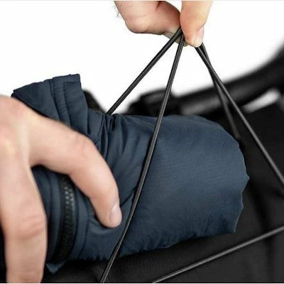 Cette sacoche s’ouvre et se ferme via deux ouvertures sur le côté pour un accès direct et rapide aux affaires. La fermeture de chaque côté se fait par enroulement + clips, permettant ainsi d’ajuster le volume selon les besoins, et également de garantir l’étanchéité à ce niveau. En plus de son compartiment principal, la sacoche dispose d’un cordon réfléchissant sur le dessus pour une zone de rangement supplémentaire, idéale pour une veste vélo, par exemple. Deux éléments réfléchissants sur le devant garantissent également une bonne visibilité au cycliste par luminosité faible.