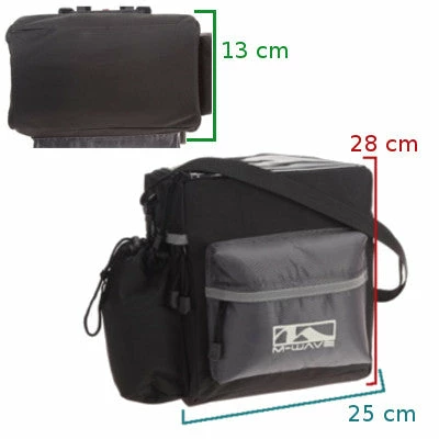 Cette sacoche de guidon fait 7 litres . Elle est munie d’un porte-carte et contient en tout 3 poches : une principale, une plus petite avec fermeture éclair et une troisième sur le côté qui sert de porte-bidon ou pour les accueillir les petites affaires. Elle est faite dans une matière en nylon imperméable 600D , ce qui protège les affaires des intempéries. Elle mesure 28 cm de haut, 25 cm de large et a une profondeur de 13 cm.